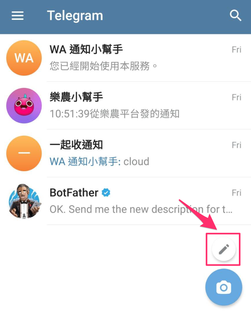 打開 Telegram,點擊右下角的編輯按鈕。