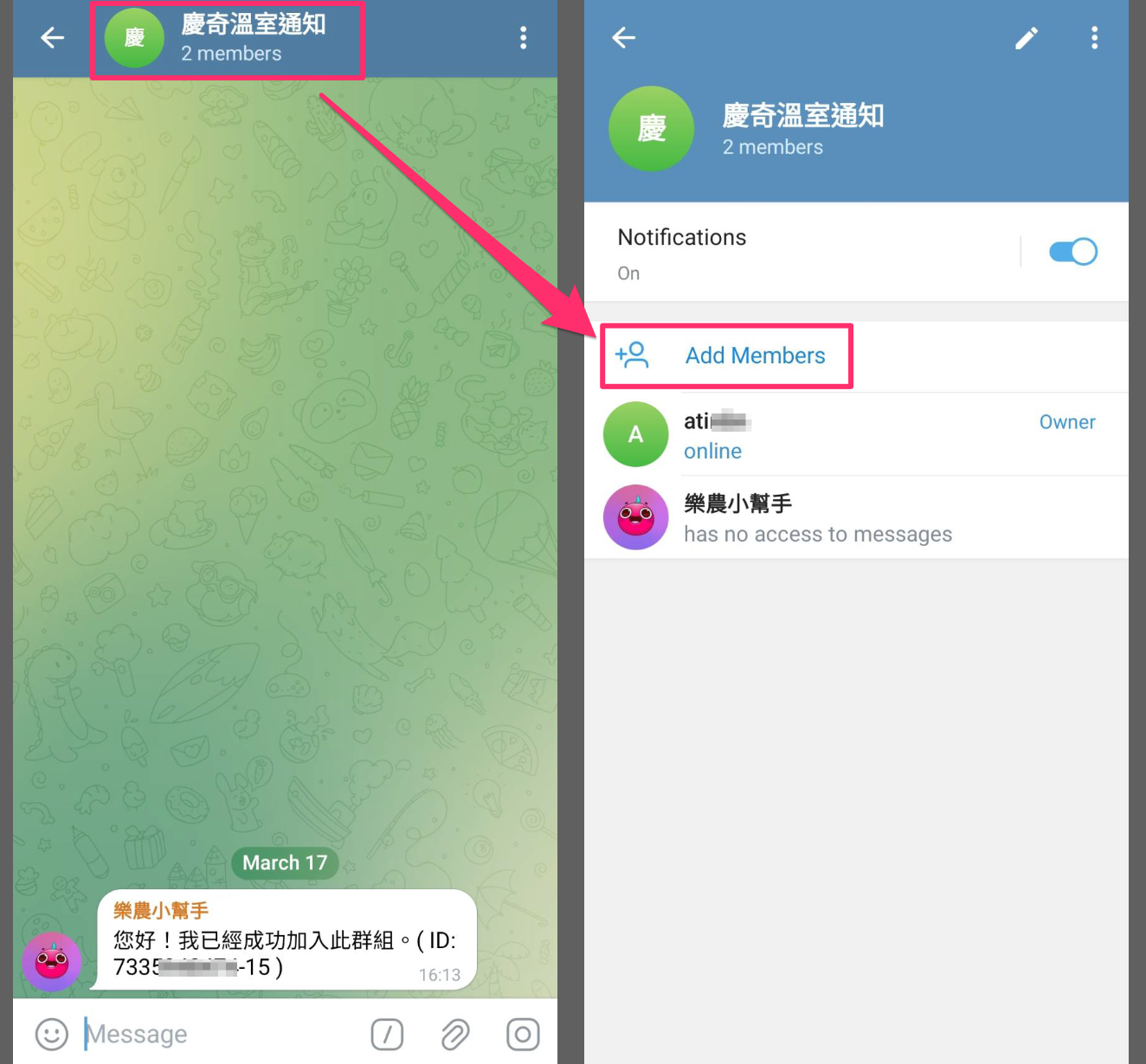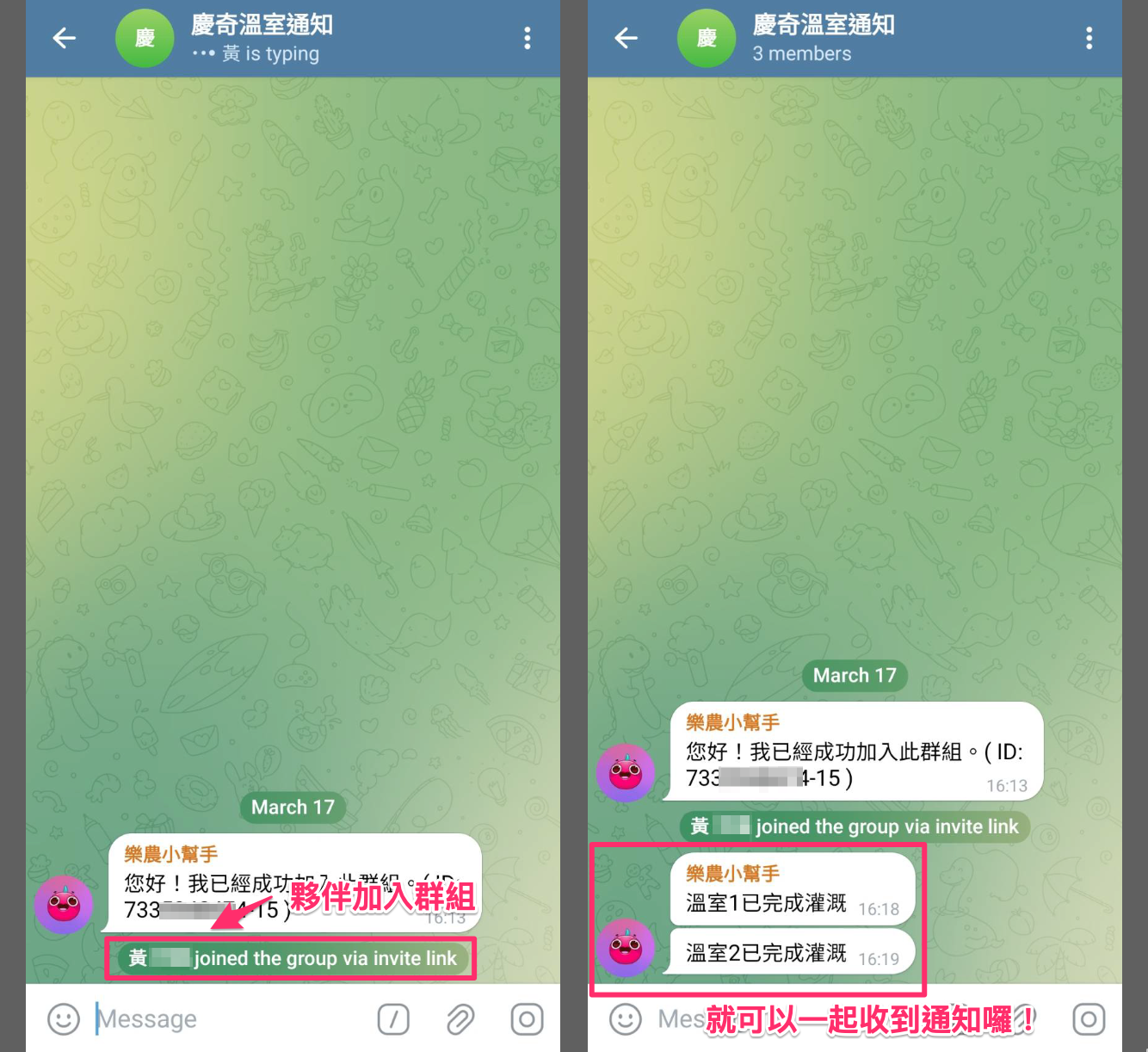 夥伴點選分享連結加入後,就可以一起收到機器人的通知囉!