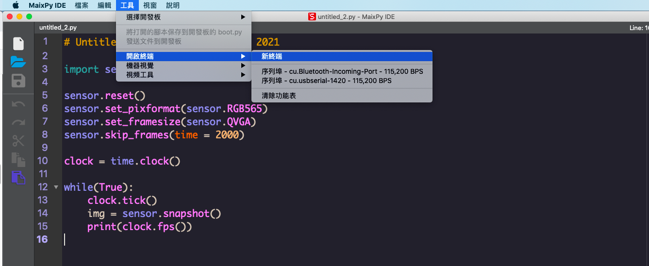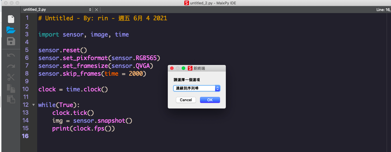 Web:AI 開發板除了可以用程式積木平台操作外,甚至也支援直接在 IDE 上撰寫 Python 程式,並透過開發板執行。